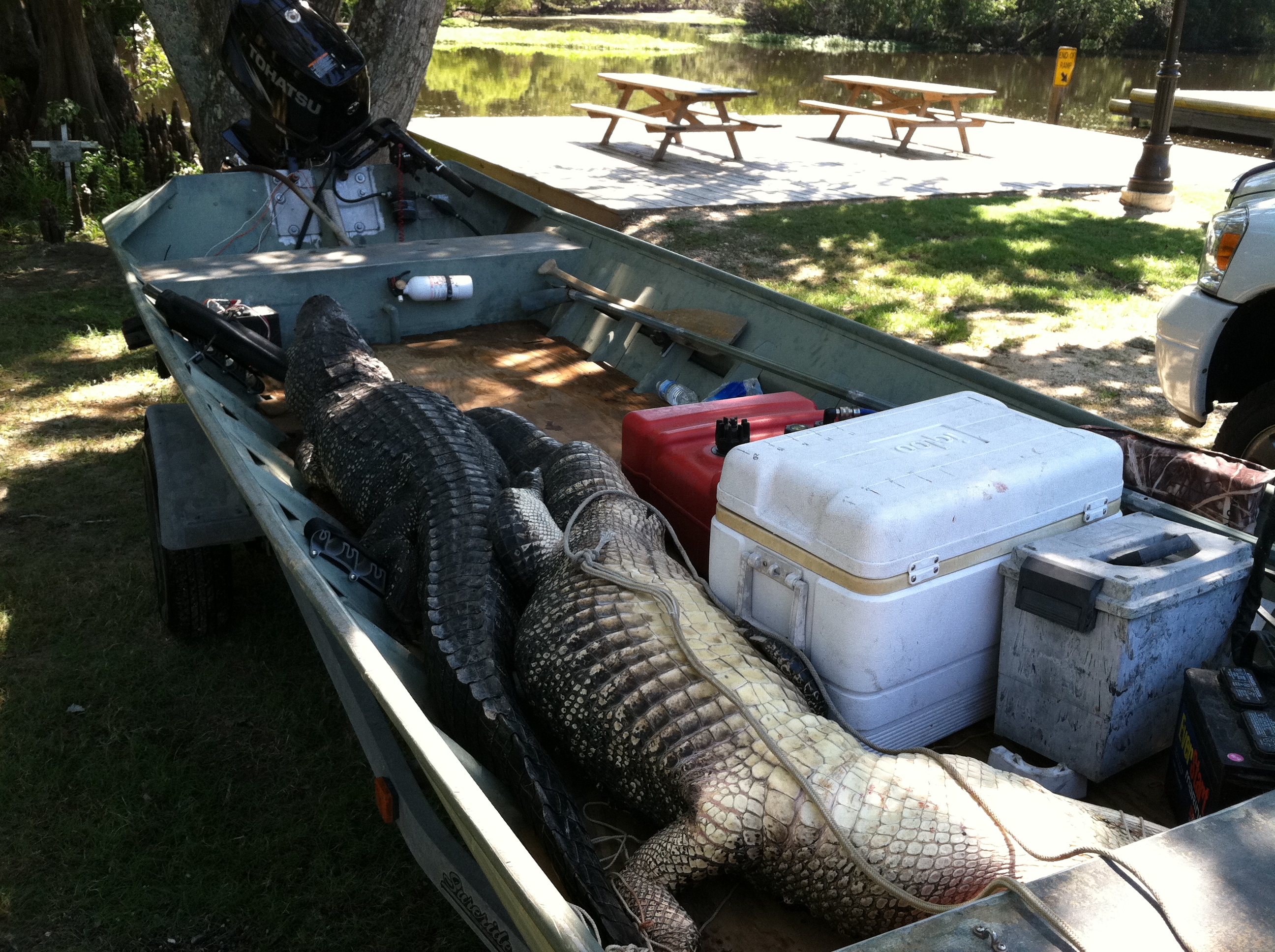 Louisiana and Texas Monster Hunts September Only Monster Alligator Season, Trophy Alligator hunting $2,000 per day hunt meet the guide at daylight hunt till 10:30 am take any gator under nine foot any gator over 9 foot mark has trophy fee of $10.00 per inch. Per Person includes One Meal, Hunting License, Tags, Transportation, Weapon, Skinning, Quartering gator and placed in your ice chest if successful this is hunting Wild Alligators and anything could happen. Non hunters $400.00 per day per person. |